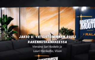 Mitä yhteistoiminta rakennushankkeessa oikeasti on? Onko se työkaluja ja prosesseja vai yhdessä toimimisen ja onnistumisen kulttuuria sekä sen tuloksena syntyvää arvontuottoa? Näistä teemoista keskustellaan Rakentamisen muutos -podcastin kuudennessa jaksossa, jossa vieraana ovat LYRA- eli Lean ja yhteistoiminta rakennusalalla -hankkeen [...]